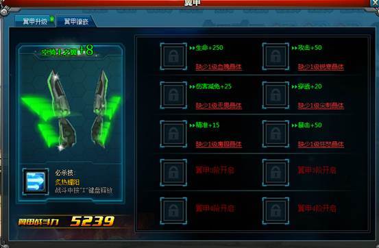 翼甲分为:翼甲升级、翼甲镶嵌2个部分