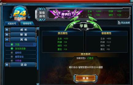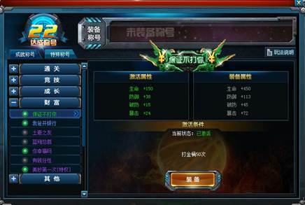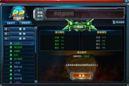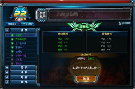 4、装备同品质的,特殊称号会比成就称号提升更多属性。