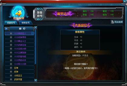 3、装备称号可增加人物属性,但只能同时装备一种称号。