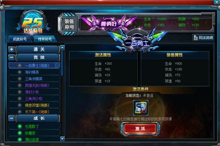 一百勇士【绝版】:开服第7日竞技排行榜达标的玩家可获得
