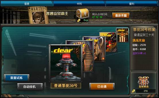 试练系统可获得大量经验、和金币、以及较为特殊的监狱令牌